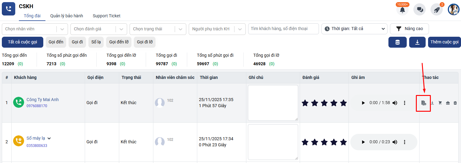 Cách này phù hợp khi bạn muốn kiểm tra tổng thể các cuộc gọi gần nhất hoặc theo dõi hiệu suất của nhân viên.