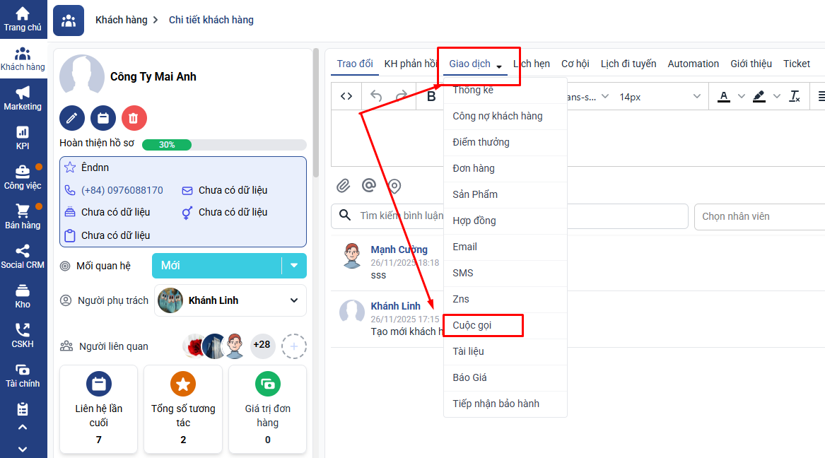 CÁCH 2: Thao Tác Từ Màn Hình Chi Tiết Khách Hàng