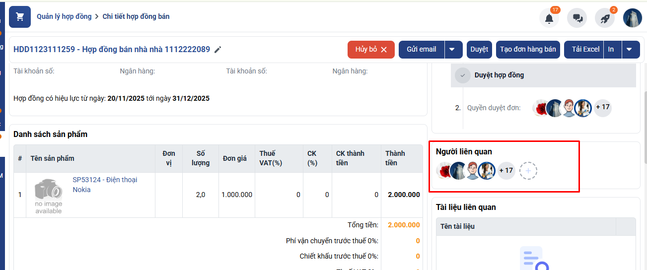 - Báo nhân sự tạo HĐ thêm tài khoản liên quan là người xem hợp đồng