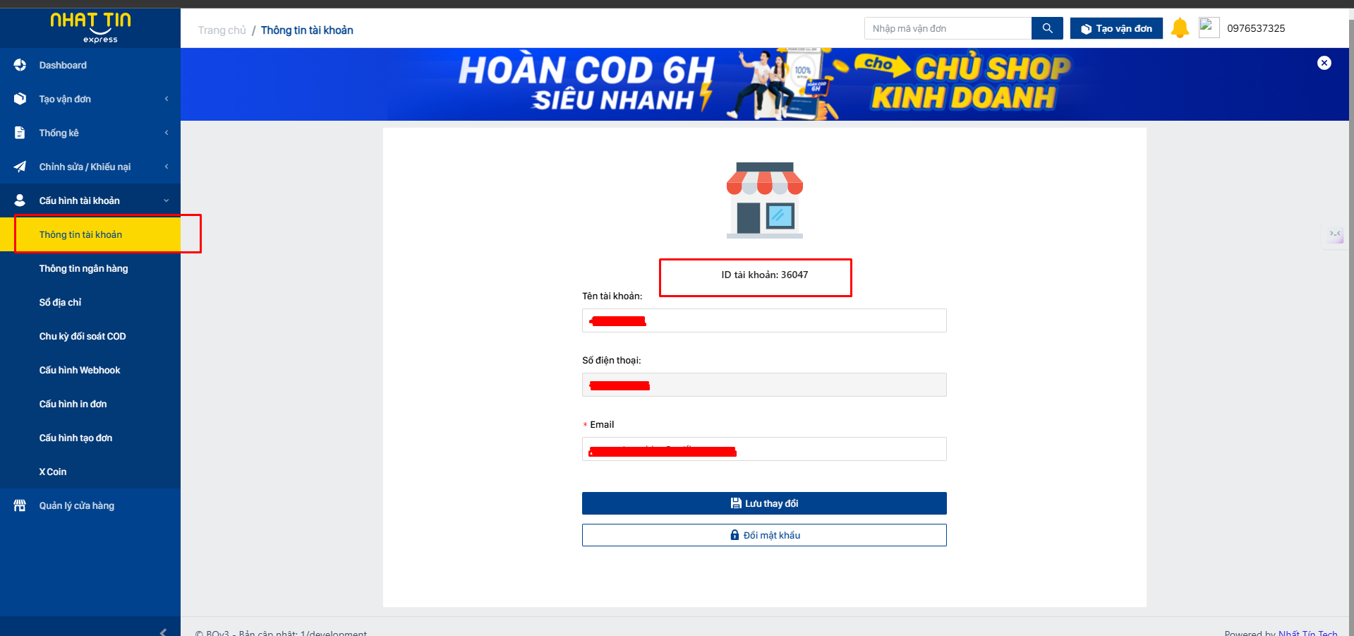 - Mã đối tác: lấy từ trang lấy từ trang Thông tin tài khoản của Nhất Tín