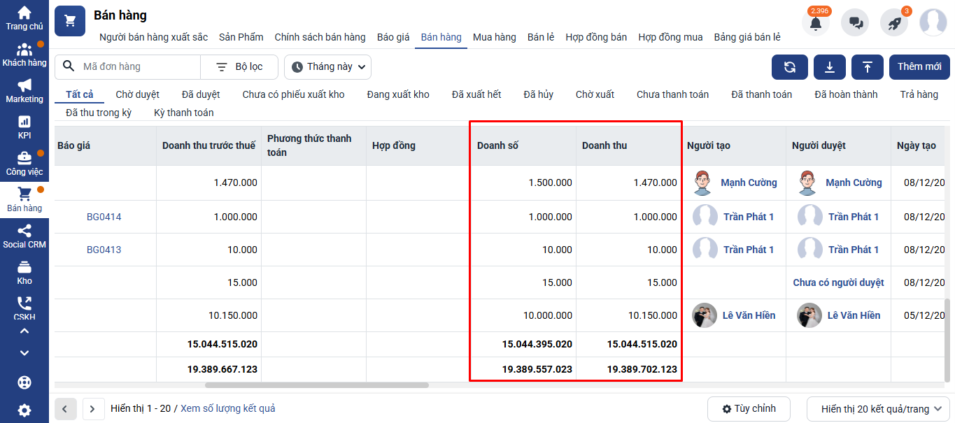 Công thức tính doanh thu doanh số trong đơn hàng tren Getfly CRM