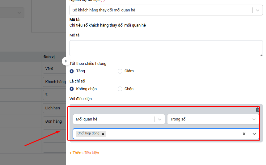 - Thêm điều kiện: Mối quan hệ mong muốn theo dõi