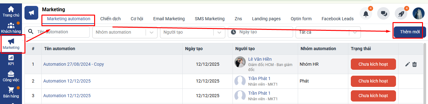 + Automation chỉ hoạt động với các phiếu tạo sau thời điểm bật Automation, không áp dụng cho dữ liệu cũ