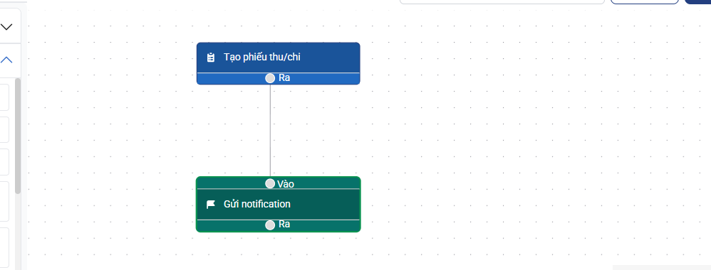 - Tại màn hình thêm mới automation chọn hành động Tạo phiếu thu/chi, hệ quả Gửi thông báo Notification