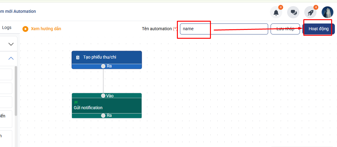 Cách cài đặt Automation thông báo cho Thủ quỹ khi kế toán tạo phiếu thu/chi trên CRM