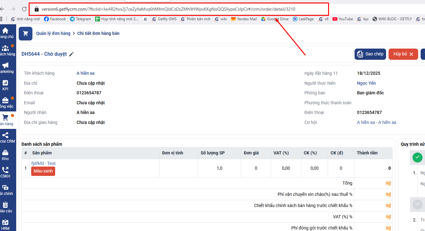 - Người dùng có thể sao chép đường dẫn của Báo giá hoặc Đơn hàng trên hệ thống.