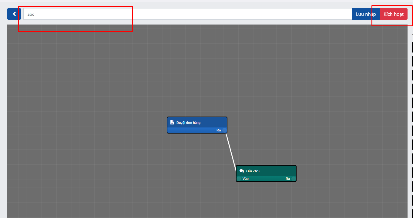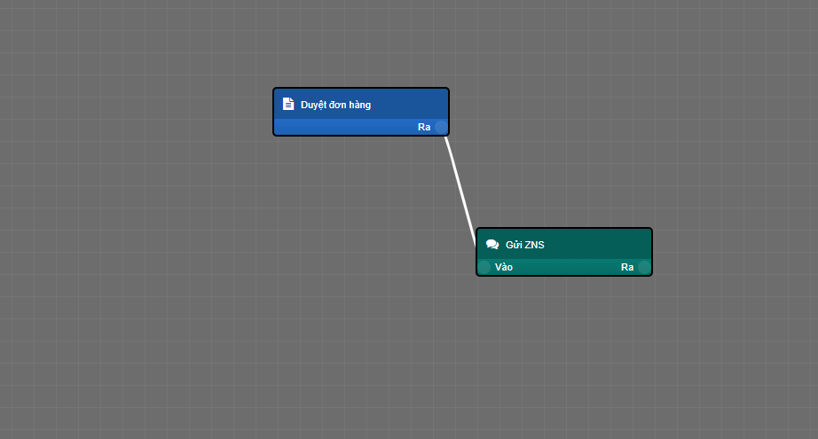 - Thực hiện nối đầu ra của hành động “Duyệt đơn hàng” với đầu vào của hệ quả “Gửi ZNS”