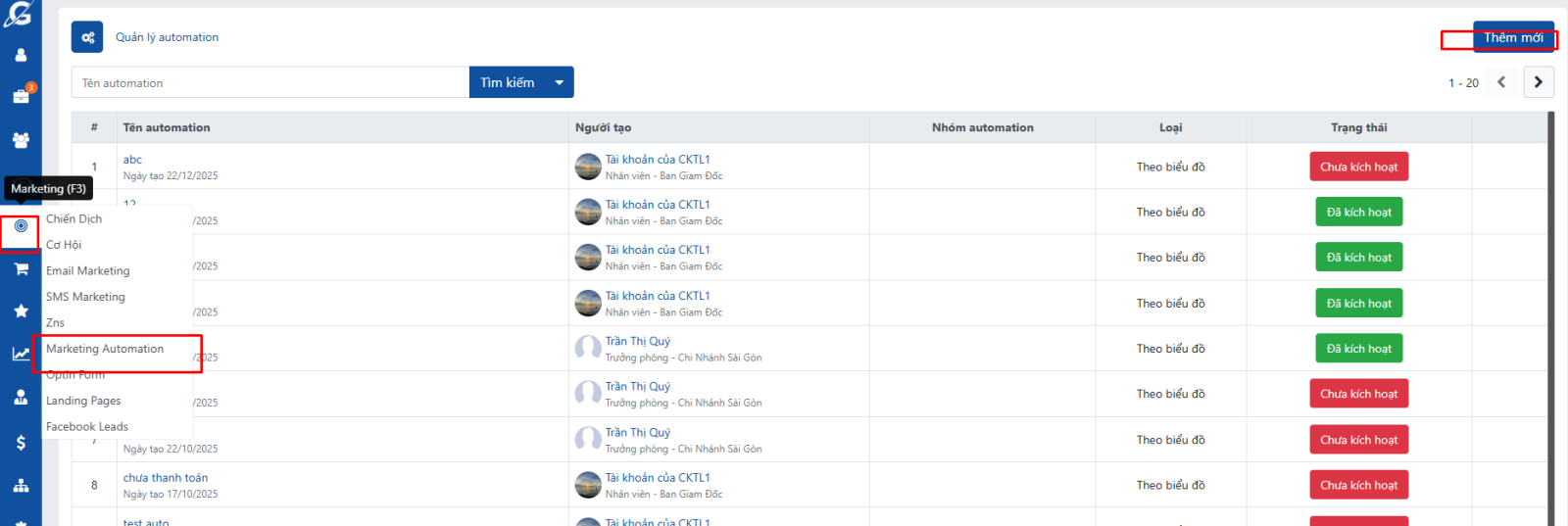 - Được phân quyền Truy cập và Thêm mới Marketing Automation trên hệ thống Getfly