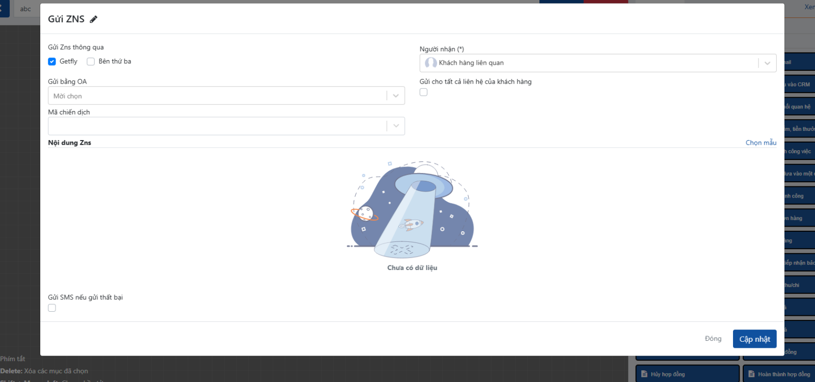 Để tối ưu quy trình này, Getfly CRM cho phép thiết lập Automation gửi ZNS tự động ngay khi đơn hàng được duyệt, giúp nâng cao trải nghiệm khách hàng và tiết kiệm nguồn lực vận hành.