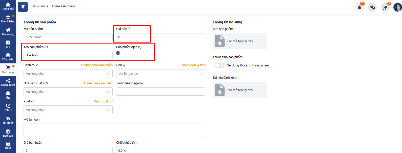 Bước 1: Tạo 1 sản phẩm dịch vụ “Hoa hồng môi giới” trên Getfly có giá trị 0 đồng