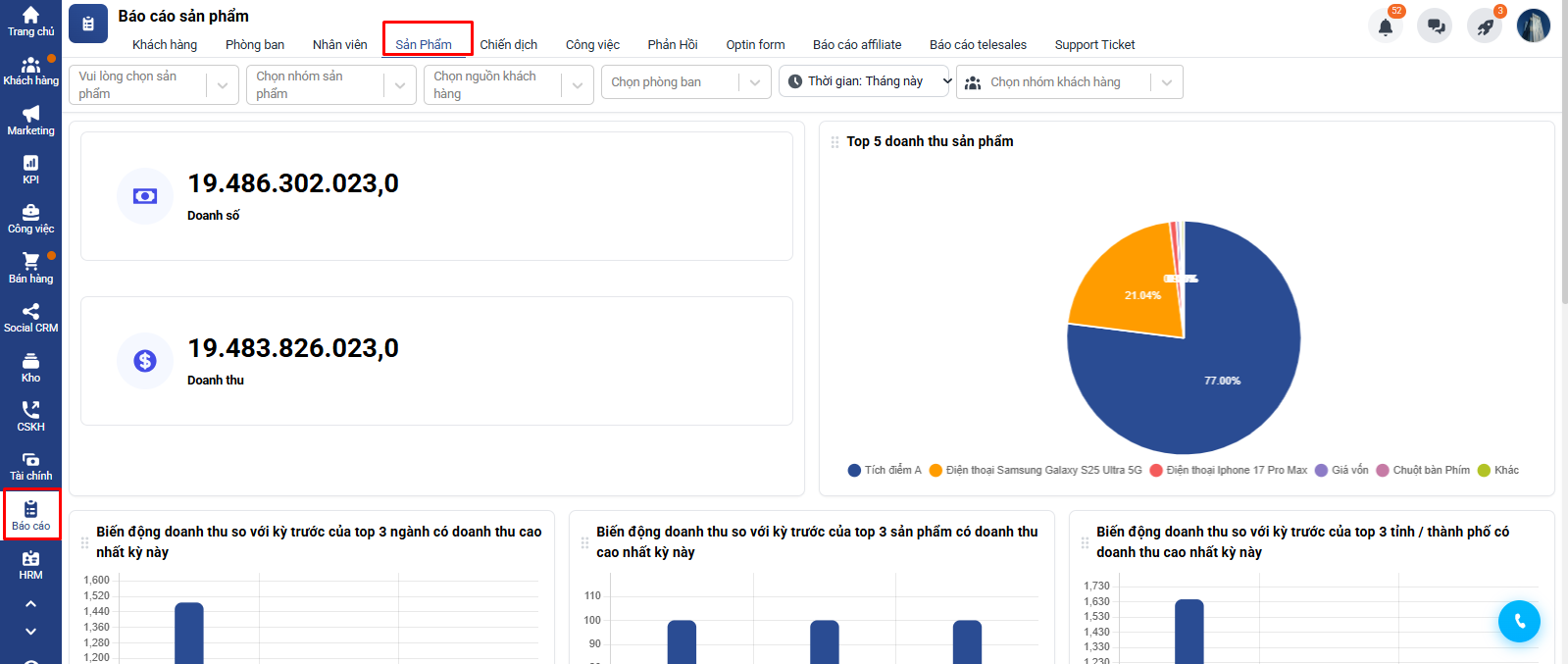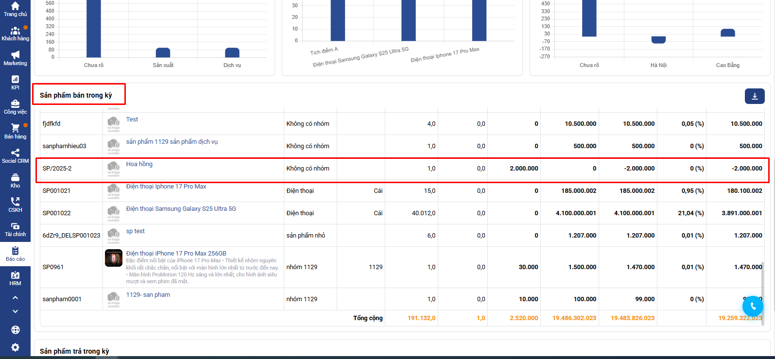 - Bạn có thể thống kê tổng khoản giảm trừ trong tháng bằng cách vào báo cáo sản phẩm → Sản phẩm bán trong kỳ → “hoa hồng” để xem