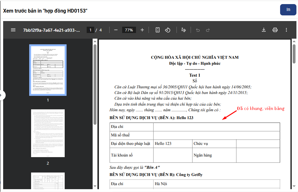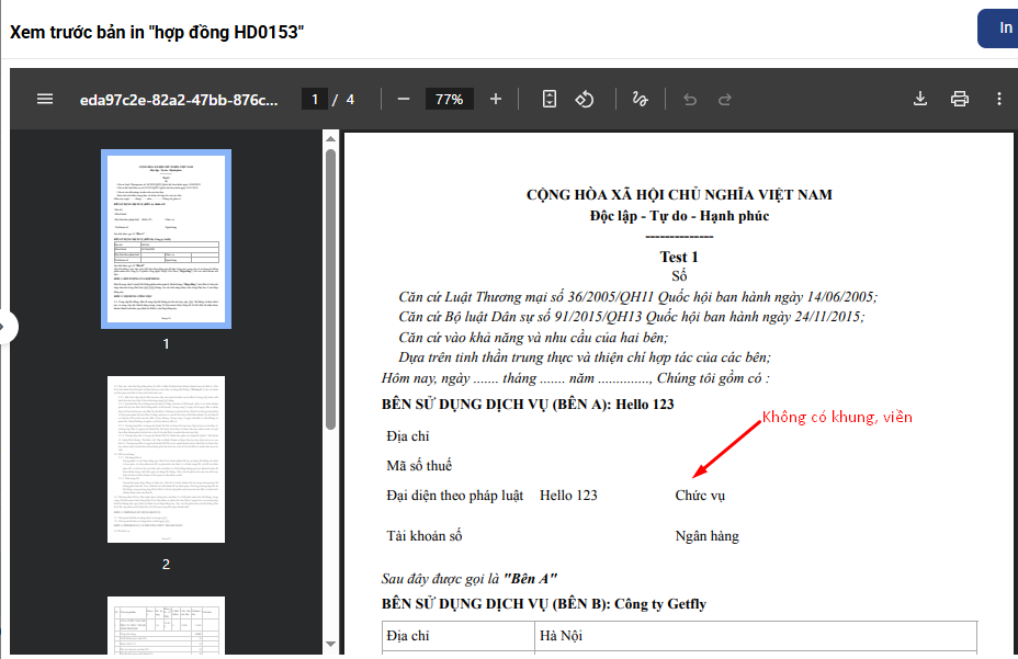 Trong quá trình thiết kế bản in trên Getfly CRM, anh/chị đã thực hiện kẻ bảng theo đúng bố cục mong muốn. Tuy nhiên, khi in ra hoặc xuất bản in, đường kẻ bảng không hiển thị đúng như thiết kế ban đầu.