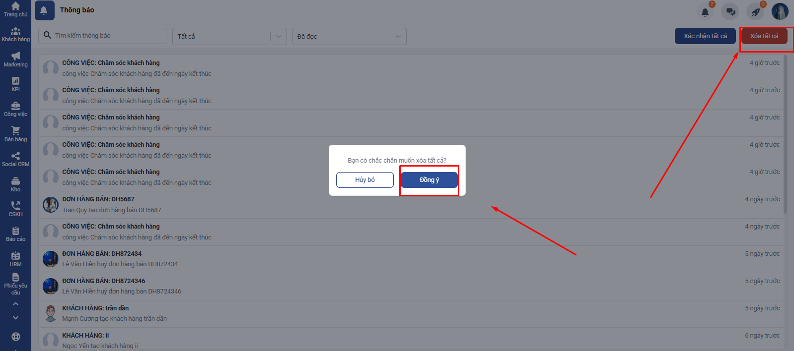 Làm thế nào để xóa toàn bộ thông báo trên Getfly CRM