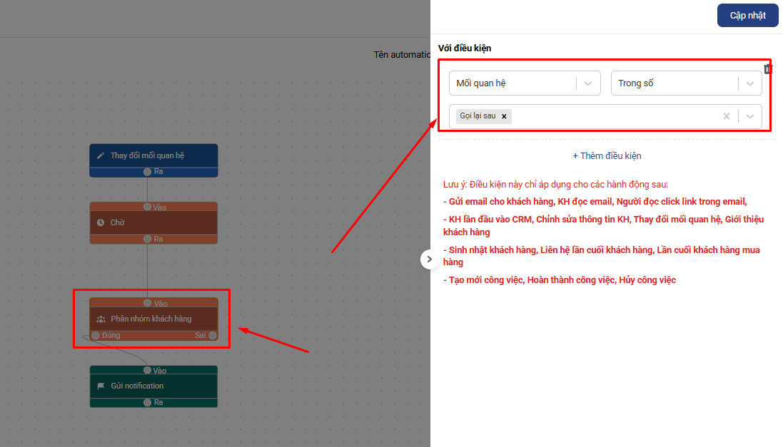 - Sale cần cập nhật đúng mối quan hệ khách hàng thì Automation mới hoạt động chính xác.