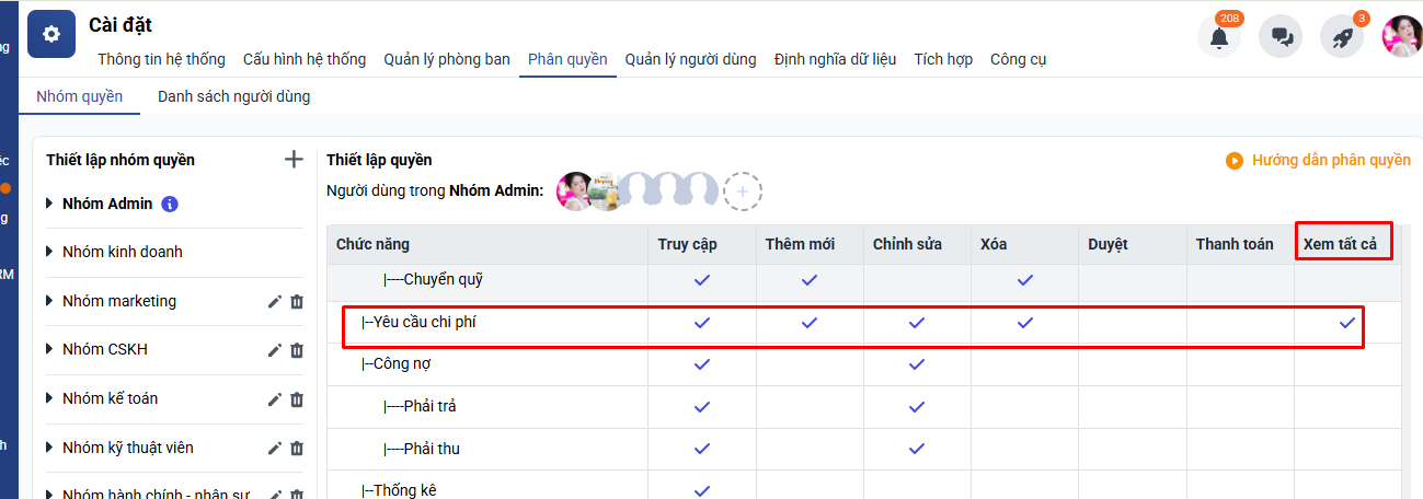 2. Những người sau sẽ được xem yêu cầu chi phí trên Getfly CRM