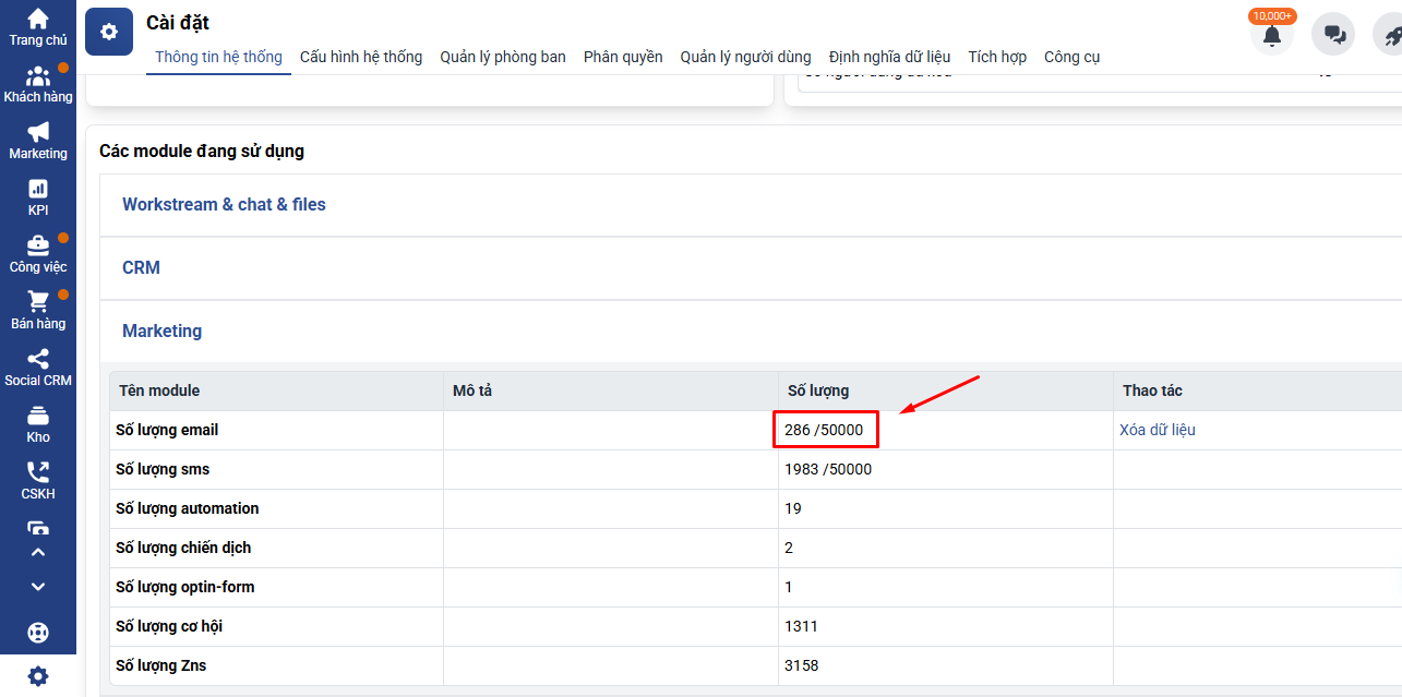 Bước 1: Xóa bớt dữ liệu lưu trữ trên Getfly để giải phóng dung lượng (Hướng dẫn xóa email tại đây)