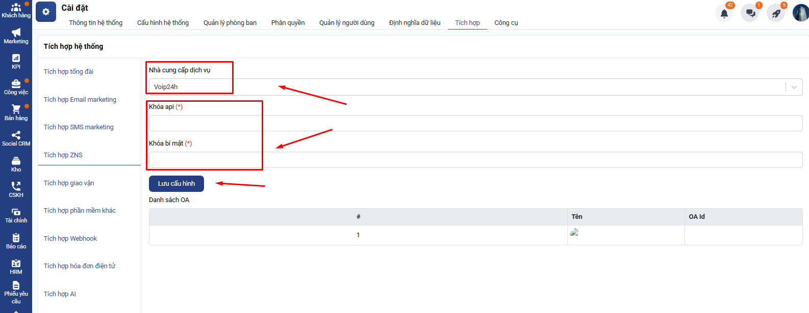 Hướng dẫn tích hợp ZNS Voip24h trên Getfly 6.0
