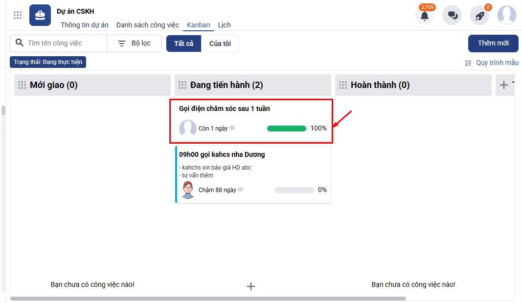 - Tiến độ 100% chỉ phản ánh mức độ thực hiện, không đồng nghĩa với trạng thái Hoàn thành.