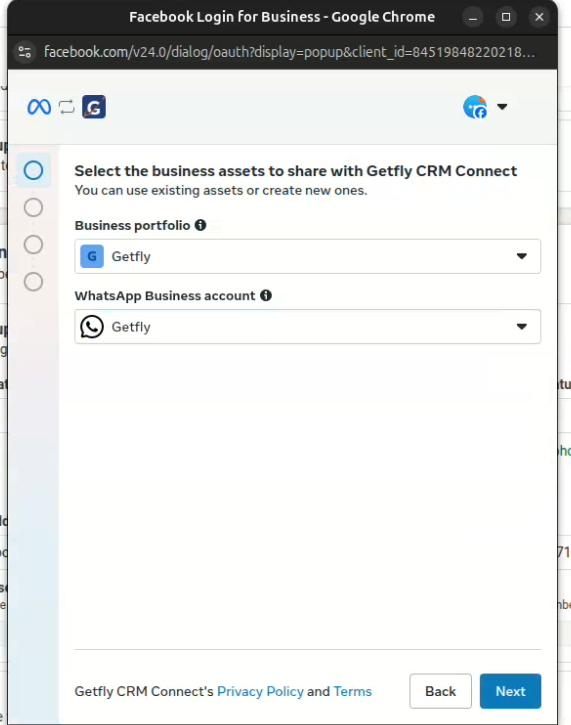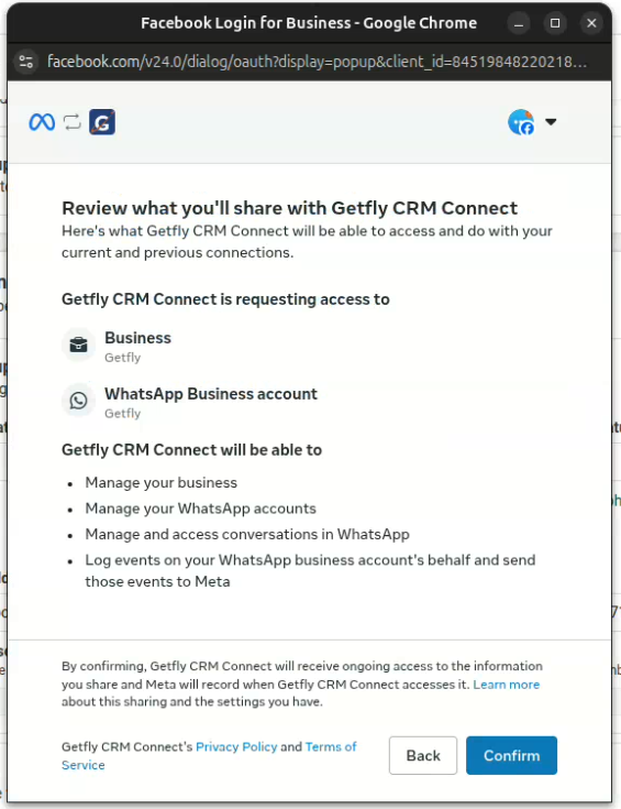 Lưu ý: Nếu tài khoản WhatsApp chưa được xác thực doanh nghiệp, bạn sẽ không thể kết nối với GetflyCRM thành công.