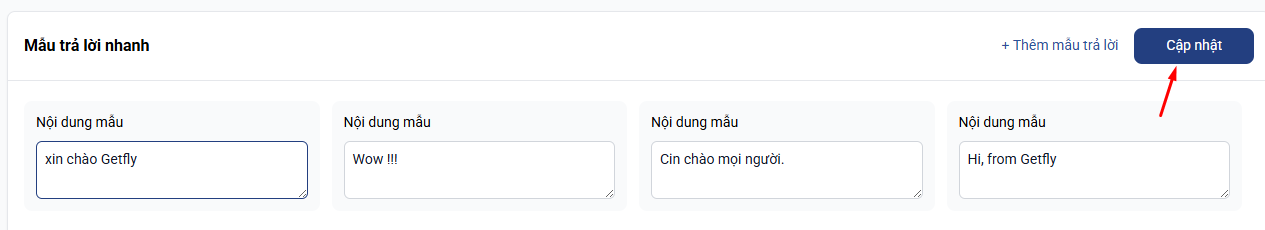 - Bước 3: Bấm cập nhật để thêm mới mẫu trả lời