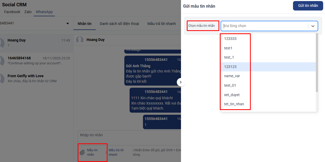 - Sử dụng mẫu tin nhắn thì lưu ý điền thông tin vào biến.