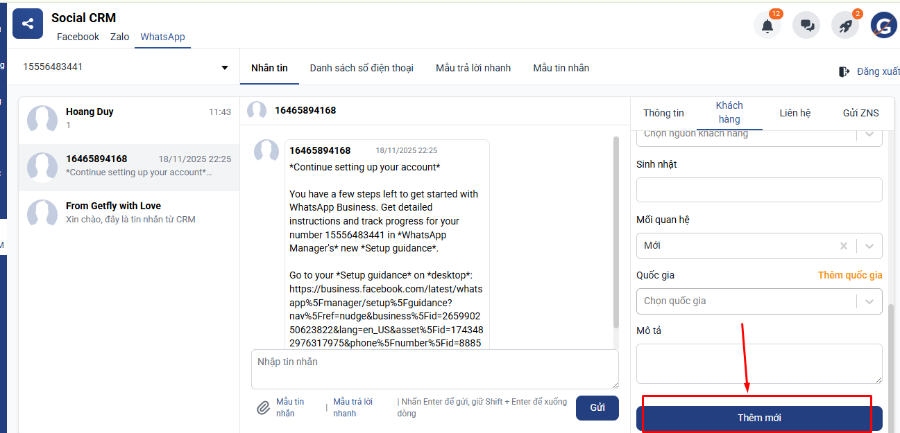 Hướng Dẫn Kết Nối WhatsApp với GetflyCRM
