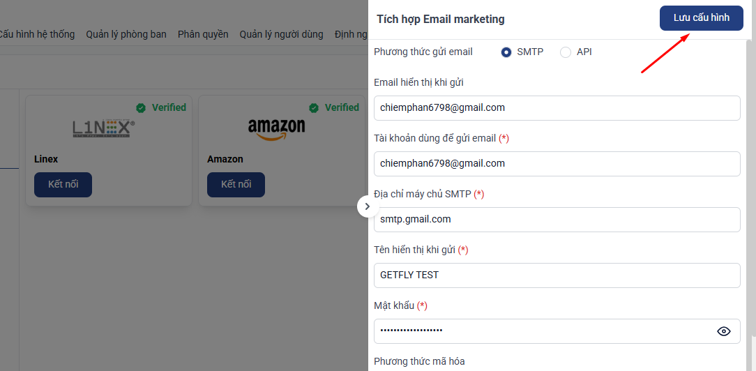 Hướng dẫn tích hợp mail Linex trên hệ thống Getfly CRM 6.0