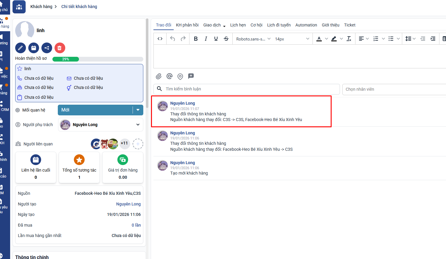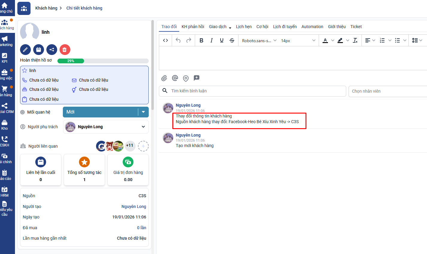 - Khách hàng được tạo trên CRM với nguồn khách hàng ban đầu