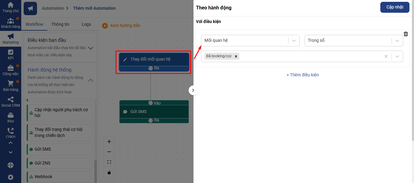 HƯỚNG DẪN CÀI ĐẶT GỬI SMS TỰ ĐỘNG KHI THAY ĐỔI MỐI QUAN HỆ KHÁCH HÀNG