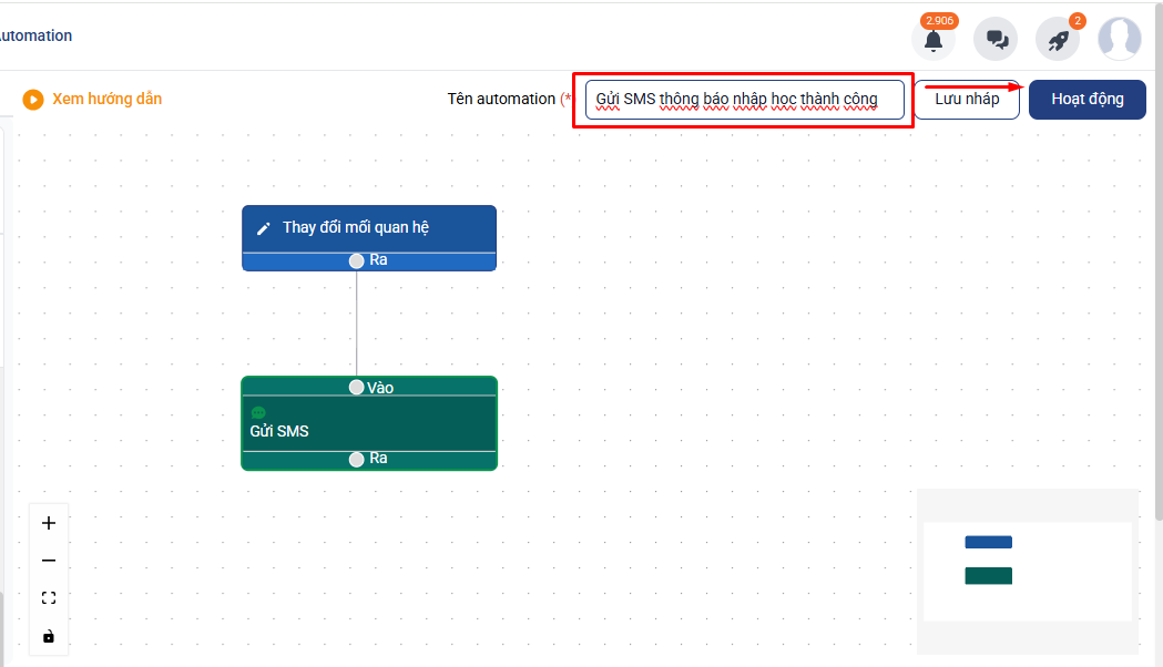 Sau khi đã kết nối với đơn vị cung cấp SMS, bạn thiết lập Automation như sau: