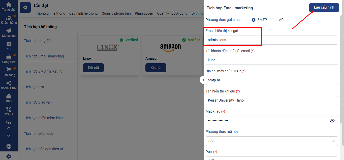 Bước 1: Truy cập mục Tích hợp Email
