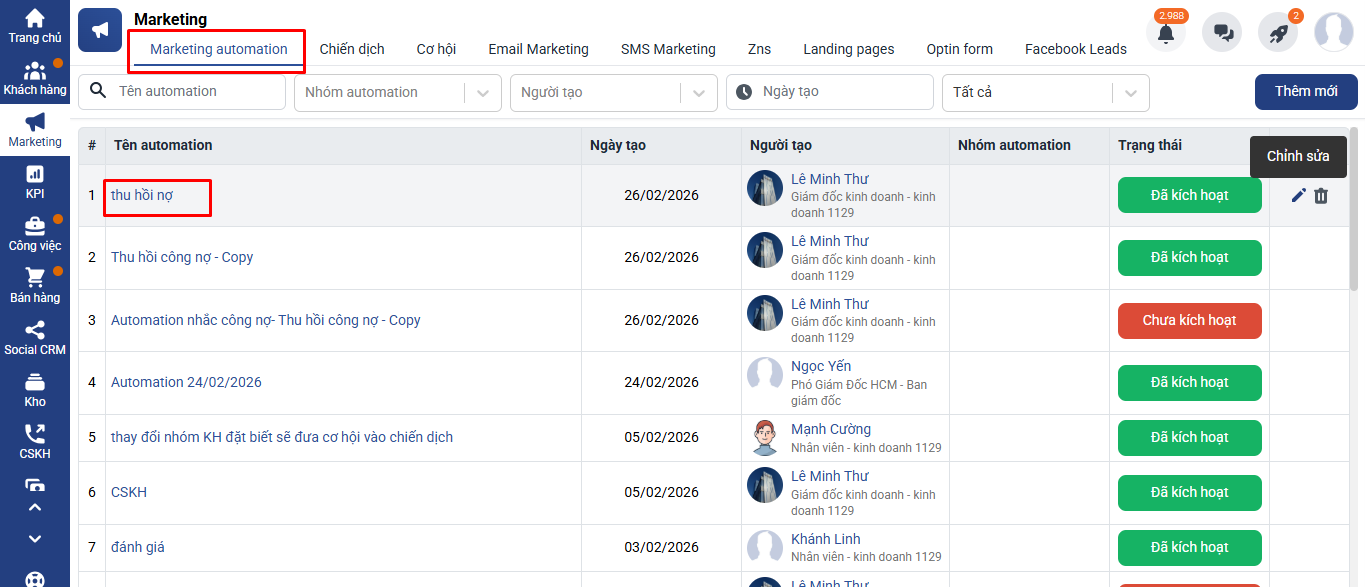 Bước 1: Truy cập Automation đang thiết lập