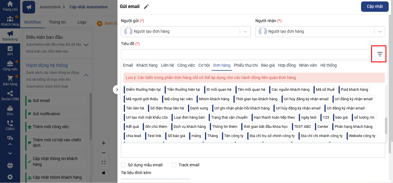 Hướng dẫn chèn biến vào mẫu Email gửi qua Automation