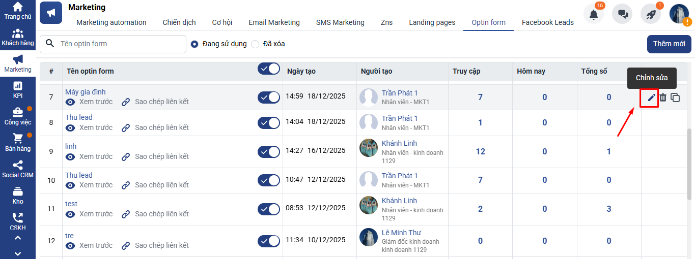 Bước 1: Truy cập vào Form đã tạo trên hệ thống Getfly CRM.