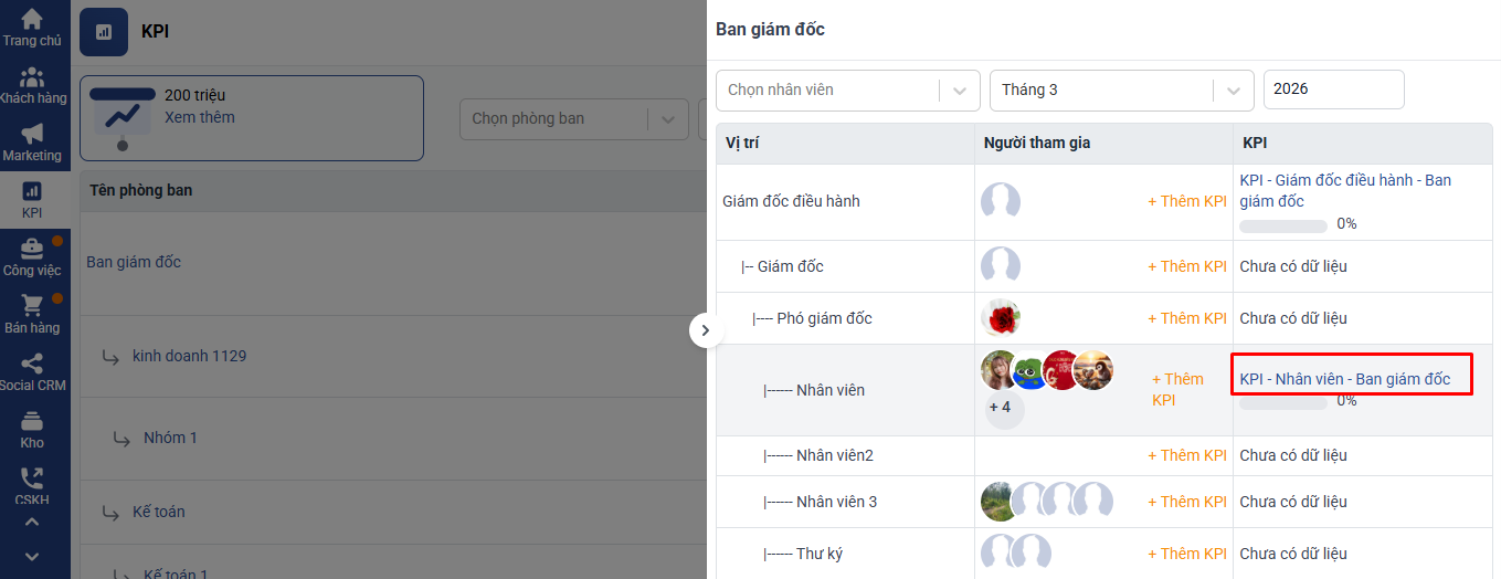 Bước 1: Truy cập vào bộ KPI cần tính lại