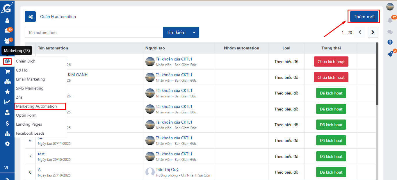 - Vào Marketing → MKT Automation