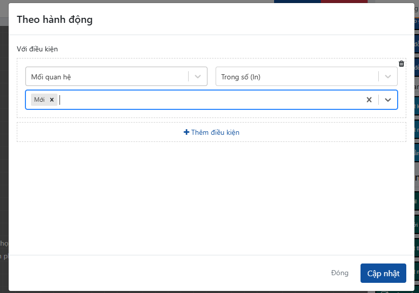 - Khách hàng lần đầu vào CRM: chọn điều kiện theo mối quan hệ khi mới nhập data lên (ví dụ mối quan hệ mới)
