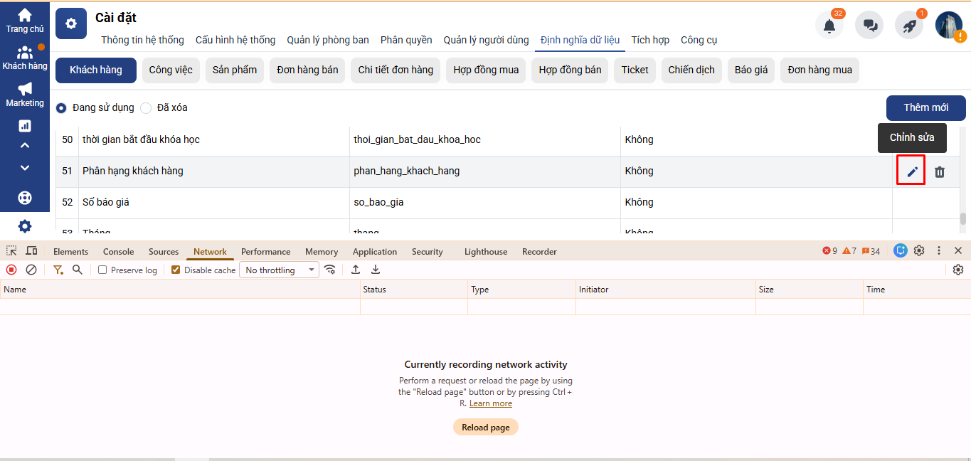Sau đó click vào sửa tại trường dữ liệu mà bạn đang cần xem