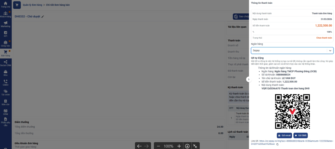 - Tự động ghi nhận trạng thái thanh toán khi khách hàng chuyển khoản qua QR