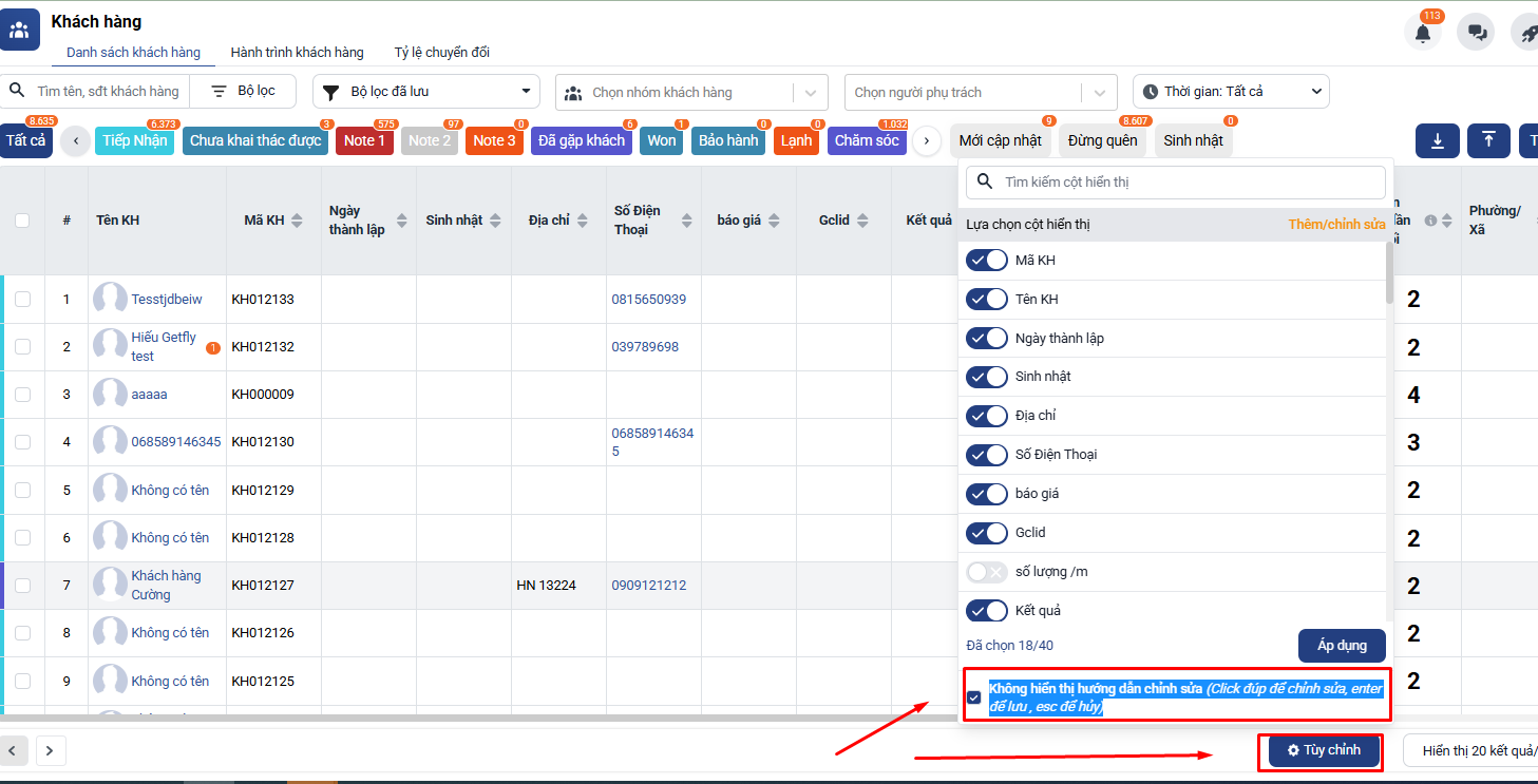 Hướng dẫn tắt hướng dẫn thao tác trên màn hình quản lý khách hàng