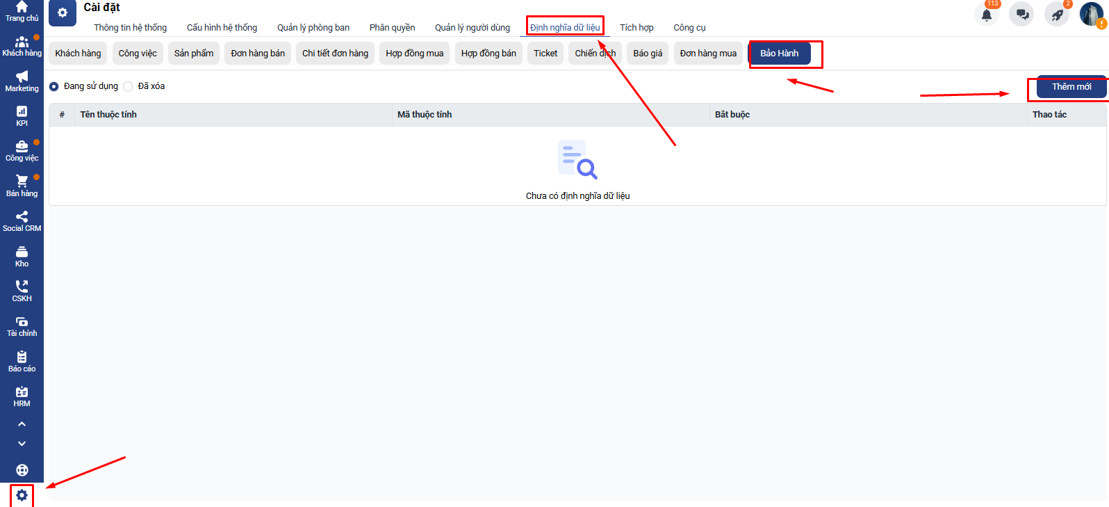 Hướng dẫn tùy chỉnh và quản lý định nghĩa dữ liệu Phiếu bảo hành trên Getfly CRM