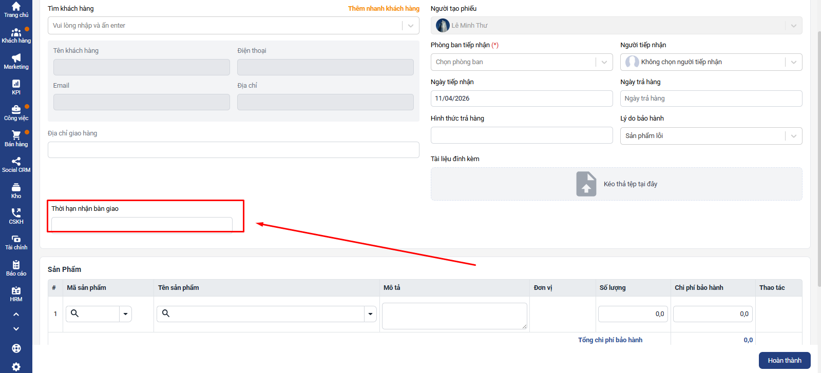 Sau khi đã nhập thông tin vào các trường tự tạo trên phiếu bảo hành, bạn có thể dễ dàng quản lý bằng cách: