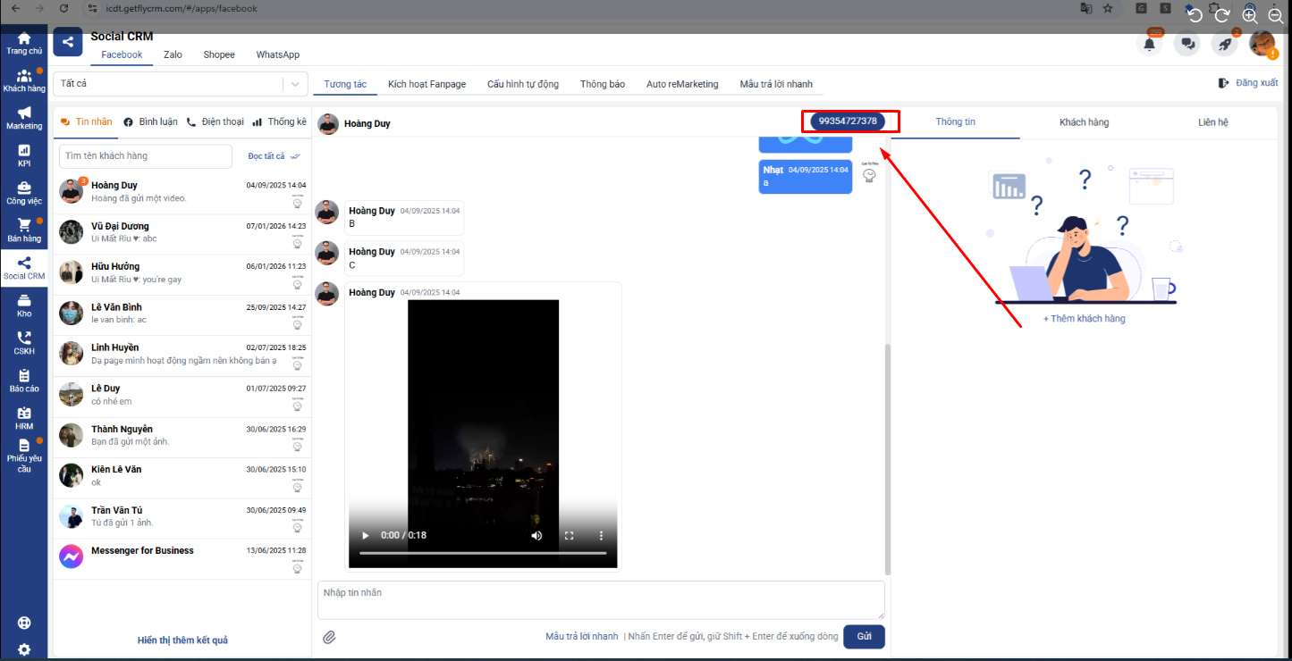 - Giao diện thân thiện: Màn hình hiển thị được thiết kế tối ưu, trực quan theo thói quen sử dụng của các chủ shop và nhà quảng cáo (tương tự giao diện Pancake), giúp nhân viên phản hồi khách hàng nhanh chóng mà vẫn nắm rõ nguồn gốc của khách.
