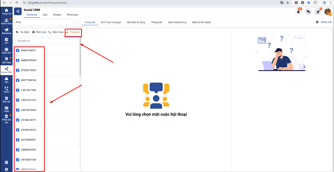 Khi có khách hàng tương tác từ quảng cáo Facebook đổ về phần chat Social của Getfly, hệ thống sẽ tự động nhận diện và ghi lại mã ID Ads tương ứng với tương tác đó.