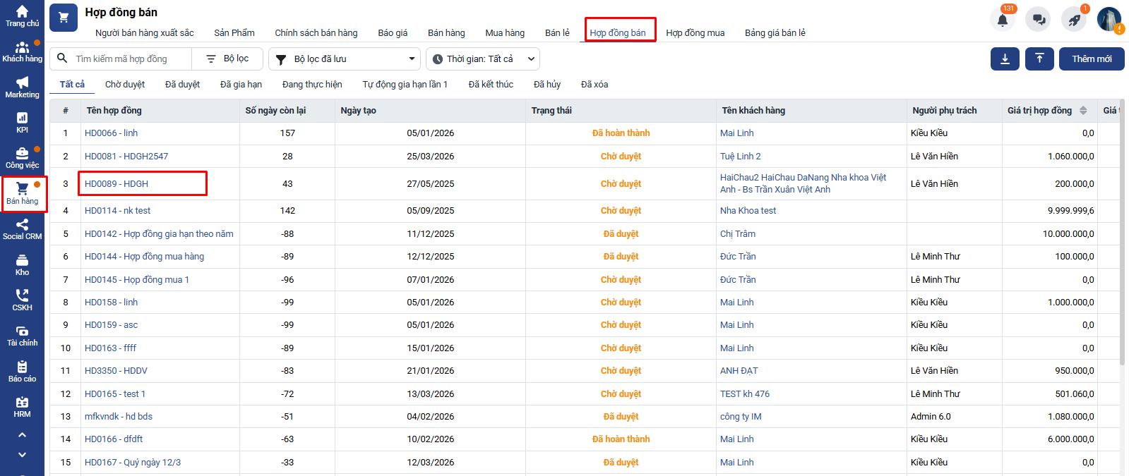 Truy cập vào module Bán hàng (F4) → Hợp đồng → Chọn Danh sách hợp đồng.